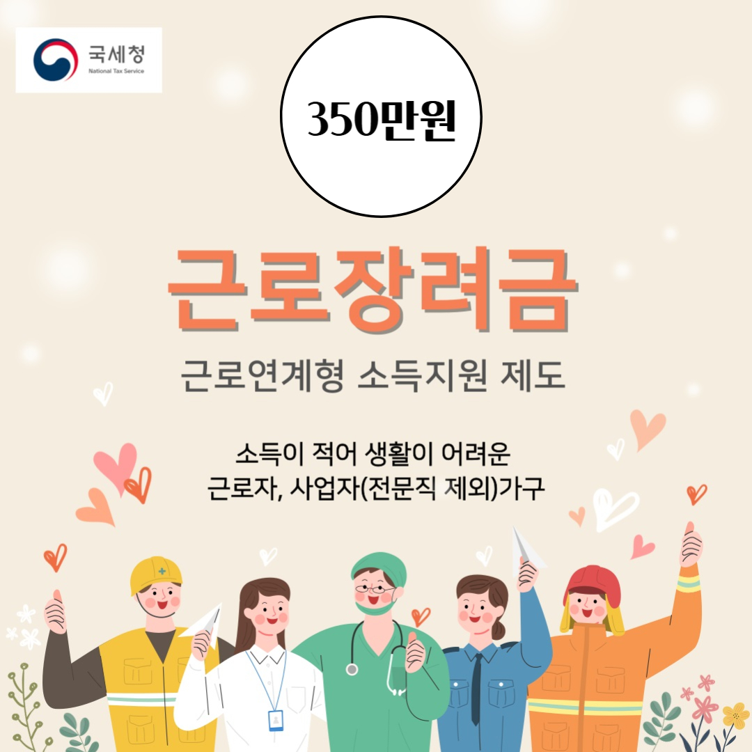 근로장려금을 통해 더 많은 가구가 경제적 자립과 안정된 생활을 이루길 기대합니다.
