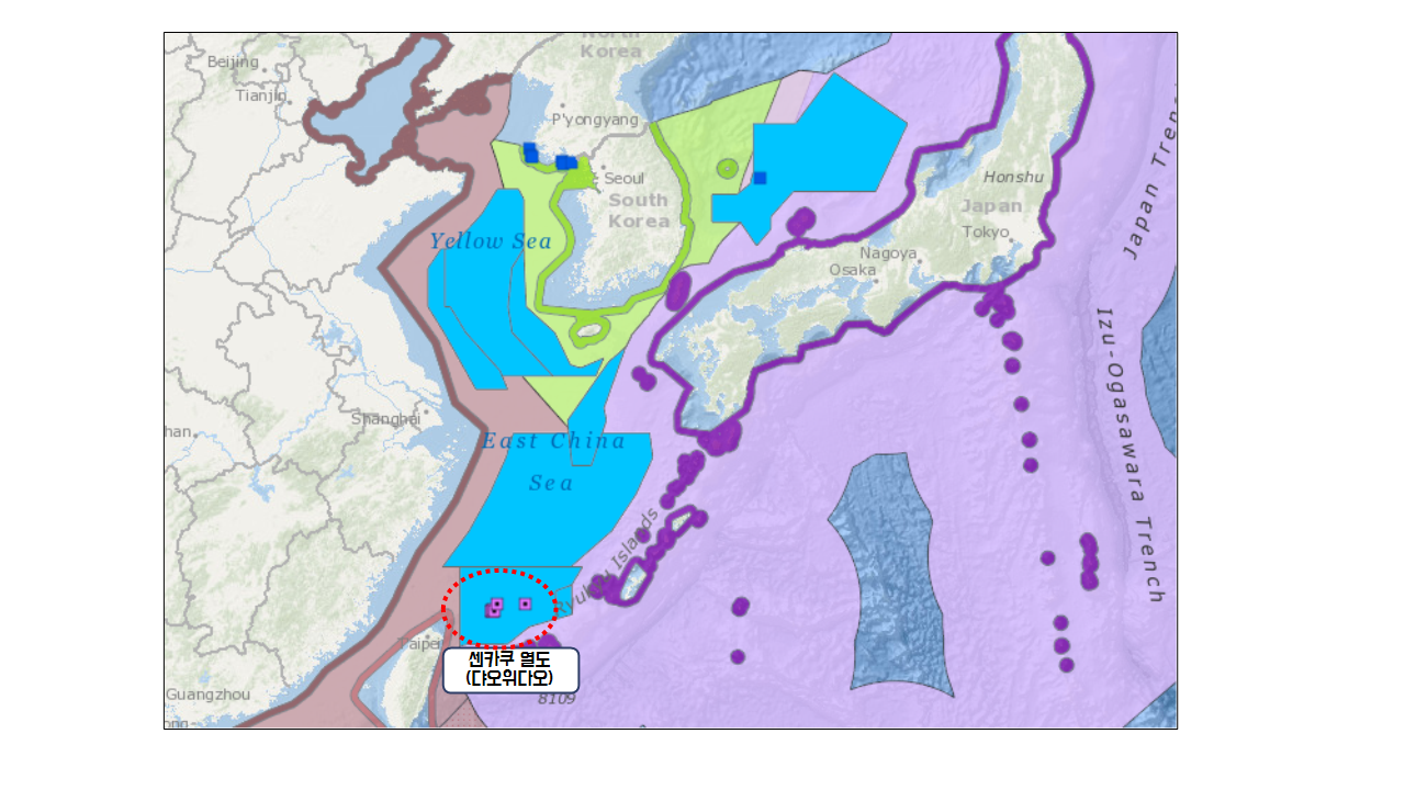 해양 영역의 법적 지위 명확화에 따른 국제적인 이슈와 분쟁을 한, 중, 일의 예시로 알아 보겠습니다. 객관적인 관점에서 적어 놓았지만 누가 억지를 부리는지 조금이라도 이러한 이슈에 관심이 있는 분이라면 아실 것입니다. 상세한 사항은 별도의 블로그를 참조하십시요.