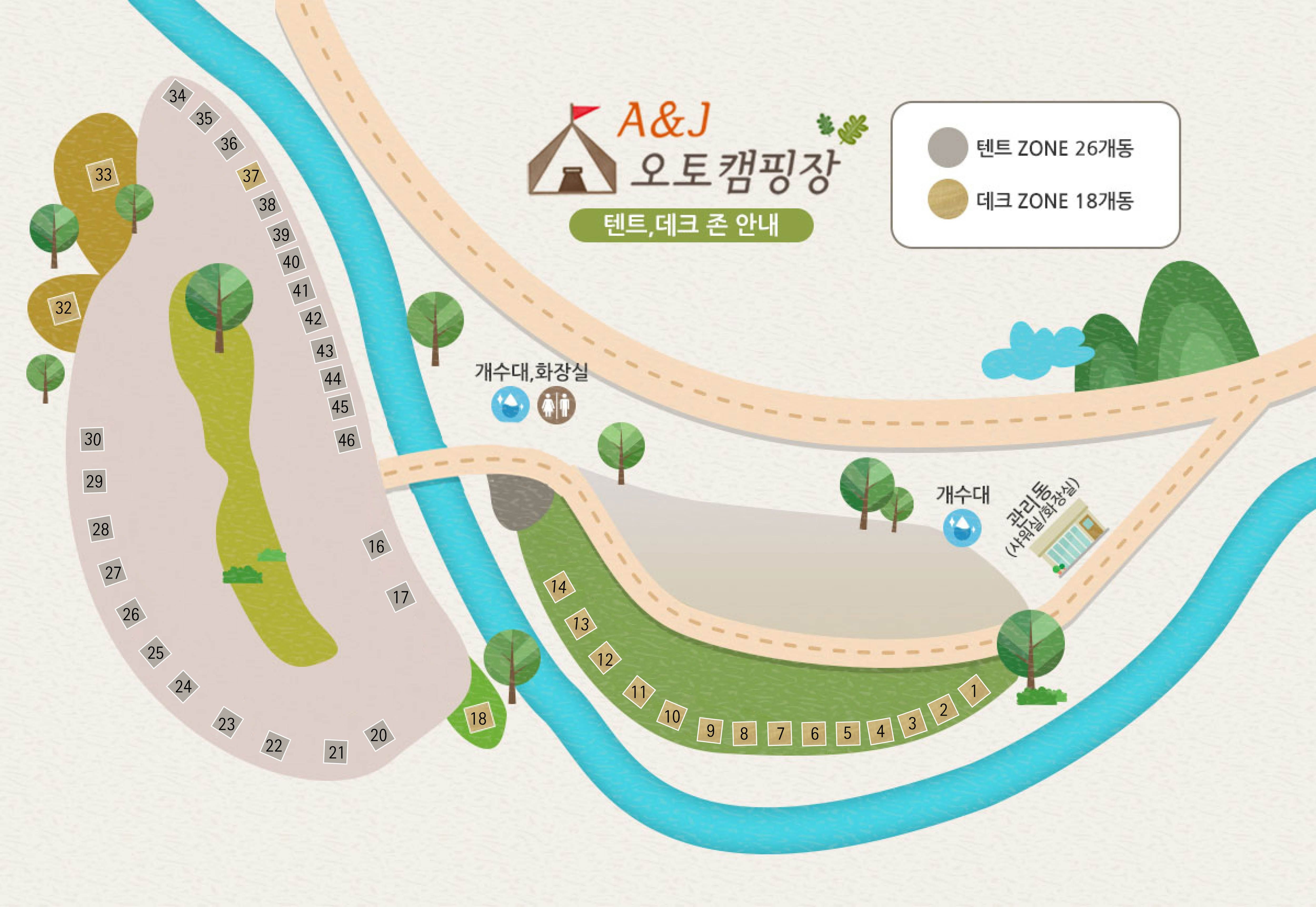 | 원주시 지정면에 위치한 A&J 오토캠핑장은 2014년 새롭게 단장하여 계곡 옆에 자리잡고 있습니다. 이 캠핑장은 가족 단위 방문객에게 이상적이며, 울창한 수림과 인접해 있어 자연을 가까이에서 즐길 수 있습니다. 또한 오크밸리 골프장과 간현유원지 레일바이크 등 주변 명소에 쉽게 접근할 수 있습니다. 기본 정보