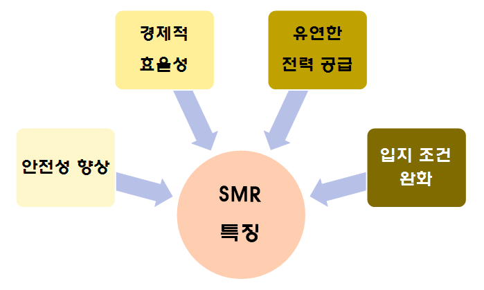 - 안전성: SMR은 자연 순환 및 수동 안전 시스템을 통해 안전성을 크게 향상시킬 수 있습니다. 작은 크기로 인해 사고 시 영향을 미치는 범위가 제한적입니다.