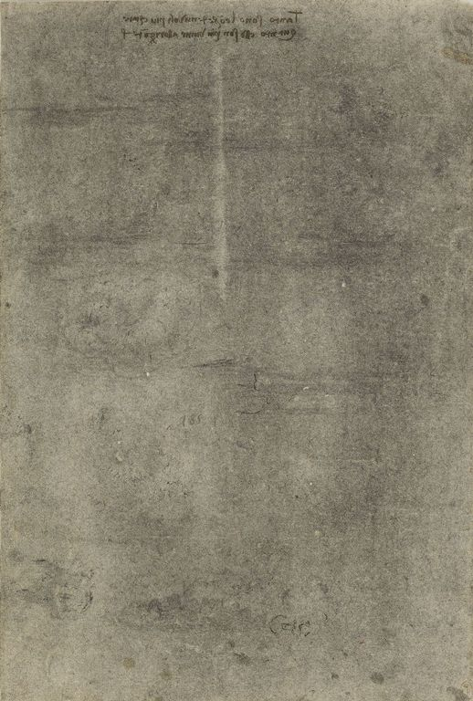 준비된 종이에 붉은 분필을 사용하여 종이 전체를 문질렀을 수도 있습니다. 이 중 하나에는 1518년 6월 24일이라는 날짜가 있는데, 이는 레오나르도가 그의 메모에서 가장 늦게 적은 날짜입니다. 분필을 문지르면서 종이 표면이 더 매끄러워졌고 그림이 마모되기 쉬웠으며, 레오나르도가 여기에서 한 연구는 대부분 지워졌습니다. 하지만 시트의 위쪽 절반에서 층상 구름 3개 층을 알아볼 수 있고, 중앙과 왼쪽 아래에 적운 2개 형성이 있으며, 아래에 산봉우리가 있을 수 있습니다. 메모에는 '구름 속 그림자는 지평선에 가까울수록 더 밝아집니다.'라고 적혀 있습니다.
