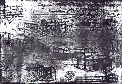 ⊙ 첫 번째 이미지: 이 이미지는 여러 가지 기하학적 도형과 기계적인 설계들이 혼합된 스케치입니다. 이 스케치는 레오나르도 다 빈치의 기하학적 연구와 기계적 발명에 대한 통찰을 보여줍니다. 특히, 다양한 다각형과 기하학적 형태들이 눈에 띄며, 이는 그가 구조적 안정성과 기계적 효율성을 추구했던 것을 나타냅니다.
