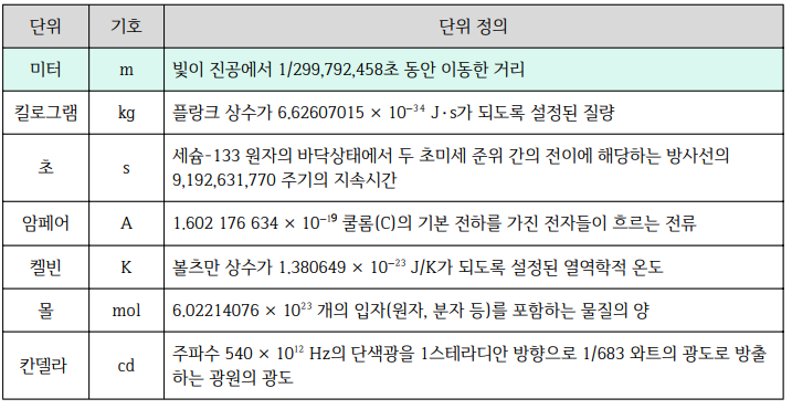 ♣ 미터 정의의 변화: 1950년대에는 미터의 정의가 지구 자오선의 길이에서 벗어나 더 정확한 물리적 현상에 기반하게 되었습니다. 1960년에는 크립톤-86 원자의 방출선 파장을 기준으로 미터가 다시 정의되었으며, 1983년에는 진공에서 빛이 1/299,792,458초 동안 이동하는 거리를 미터의 기준으로 정하게 되었습니다. 이는 오늘날까지 유지되고 있는 미터의 정의입니다.