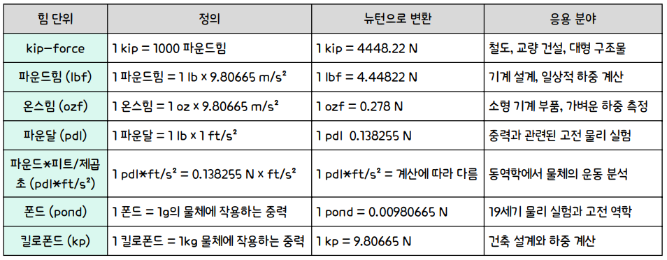 kip-force, 파운드힘, lbf, 온스힘, ozf, 파운달, pdl, 파운드*피트/제곱초, 폰드, pond, 킬로폰드, kp, 기타 다양한 힘 단위 완벽 가이드