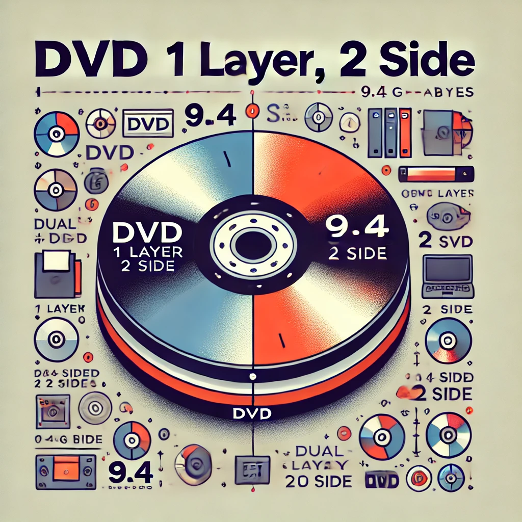 DVD (1 layer, 2 side) | 9.4기가바이트 | 긴 영화, 대규모 데이터 저장 |