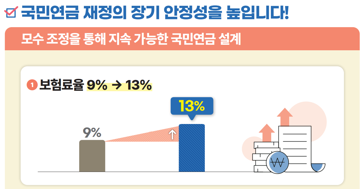 정부는 국민연금 개혁안을 통해 연금 수급 시기를 늦추고, 보험료율을 단계적으로 인상하는 방안을 제시하고 있습니다. 또한, 고소득자와 기업에게 더 많은 부담을 지우는 방향으로 재정 구조를 개선하려는 시도도 있습니다. 이러한 개혁안이 성공적으로 실행되면, 국민연금 고갈 문제를 완화하고, 미래 세대의 안정적인 연금 수령을 보장할 수 있을 것입니다. 이러한 내용을 정리된 내용으로 "국민연금 고갈 위기, 개혁안으로 해결될까? 미래세대를 위한 중요한 변화"를 참고하시기 바랍니다.
