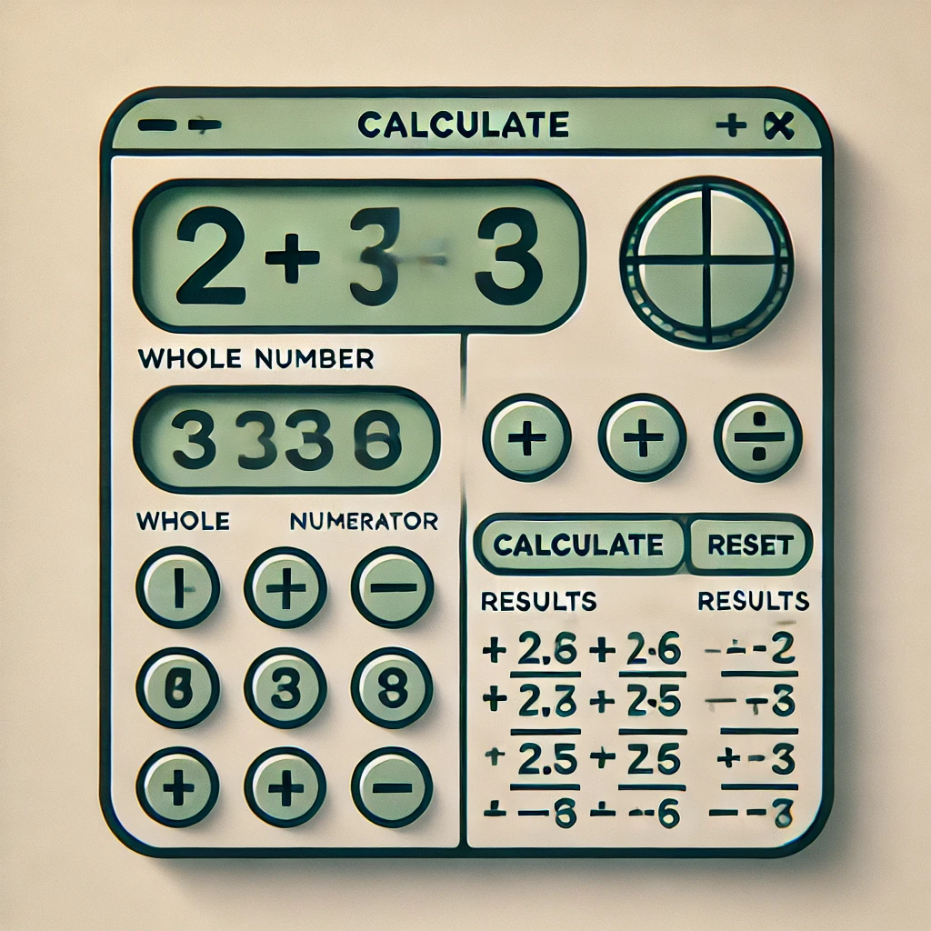 이 계산기는 두 개의 대분수를 입력하고, 선택한 연산자에 따라 덧셈, 뺄셈, 곱셈, 나눗셈을 수행하는 도구입니다. 계산기의 사용법은 다음과 같습니다.