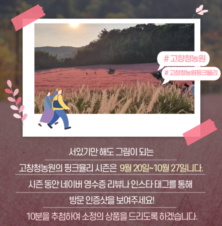 고창청농원 핑크뮬리 축제는 아름다운 자연 속에서 특별한 가을을 경험할 수 있는 최고의 장소입니다. 가족, 친구, 연인과 함께 가을의 정취를 만끽하며 소중한 추억을 만들어보세요.