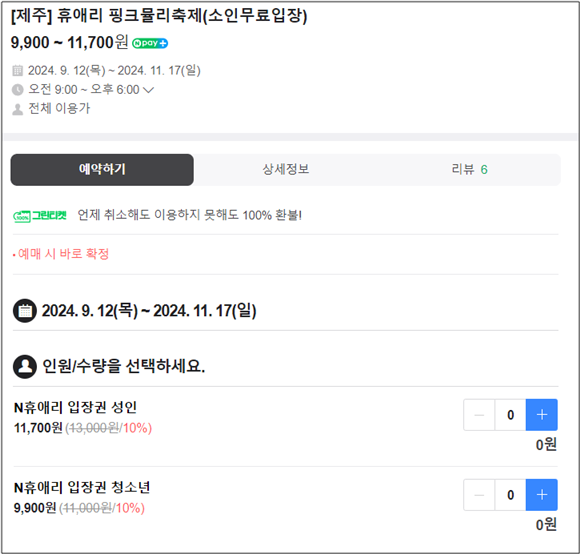 | 메인 프로그램 | 핑크뮬리 가든 관람 및 포토존 | 2024.09.13 ~ 2024.11.17 |