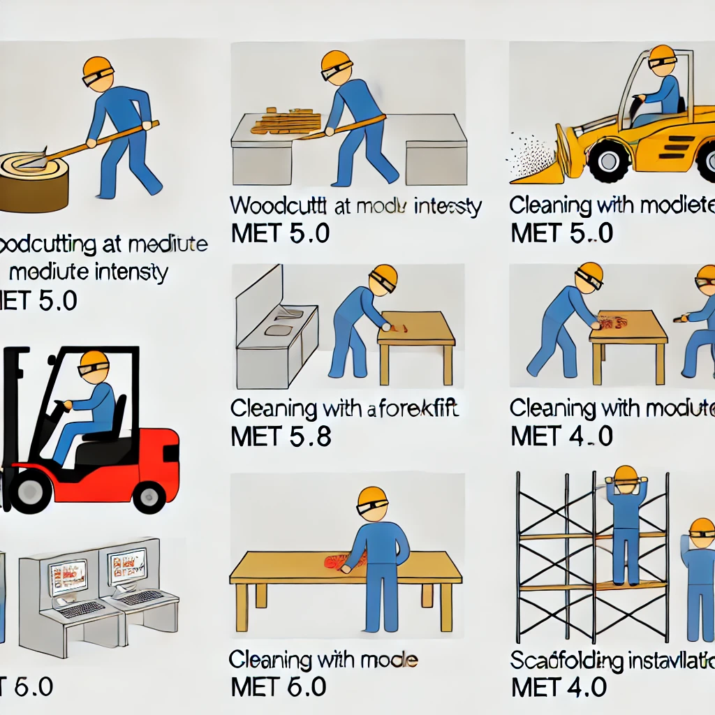 우리는 일상 속에서 다양한 작업 활동을 수행합니다. 직장에서의 신체적 움직임은 업무의 성격에 따라 다르며, 이러한 활동은 몸에 에너지 소비를 유발합니다. 이때, 각 활동에 따른 에너지 소비량을 확인하고 싶다면 MET(대사당량, Metabolic Equivalent of Task) 값을 활용할 수 있습니다. MET 값은 각 활동이 얼마나 많은 칼로리를 소모하는지 알 수 있는 중요한 지표로, 그 값이 높을수록 에너지 소모량도 증가합니다.