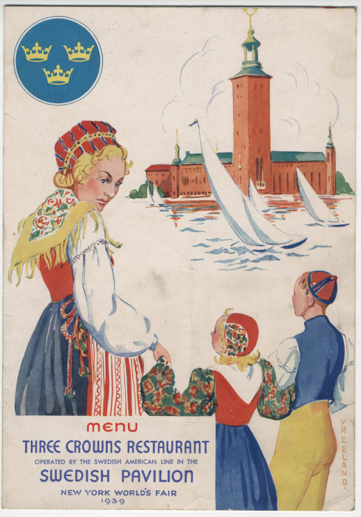 ※ 출처: 이것은 1939년 뉴욕 세계 박람회의 6개 메뉴 중 하나입니다. Swedish American Line, "Three Crowns Restaurant, Swedish Pavilion, New York World's Fair, 1939"(1939). 기념 메뉴