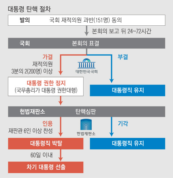 - 탄핵 인용: 재판관 9명 중 6명 이상의 찬성 필요.
