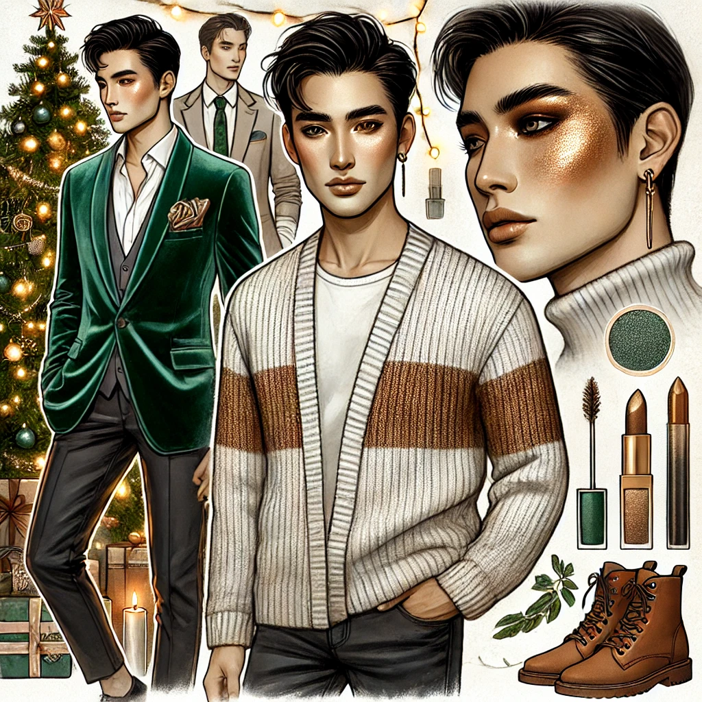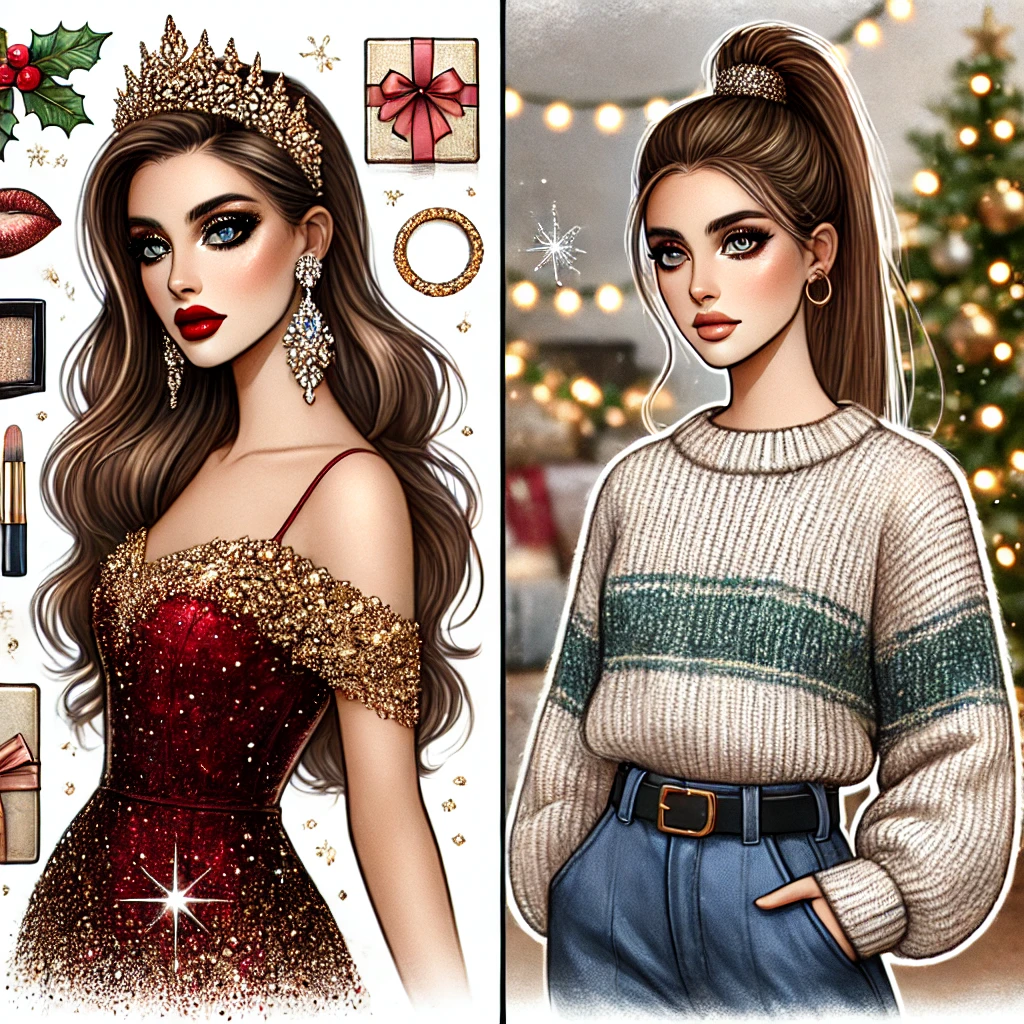 3) 패션 트렌드 반영: 크리스마스 패션과 뷰티 스타일링은 현재의 패션 트렌드를 기반으로 제안되었습니다.