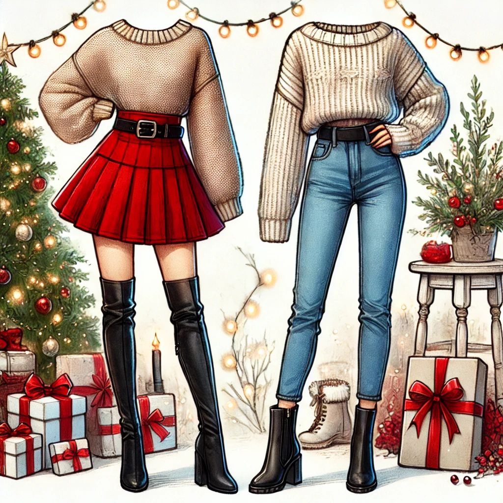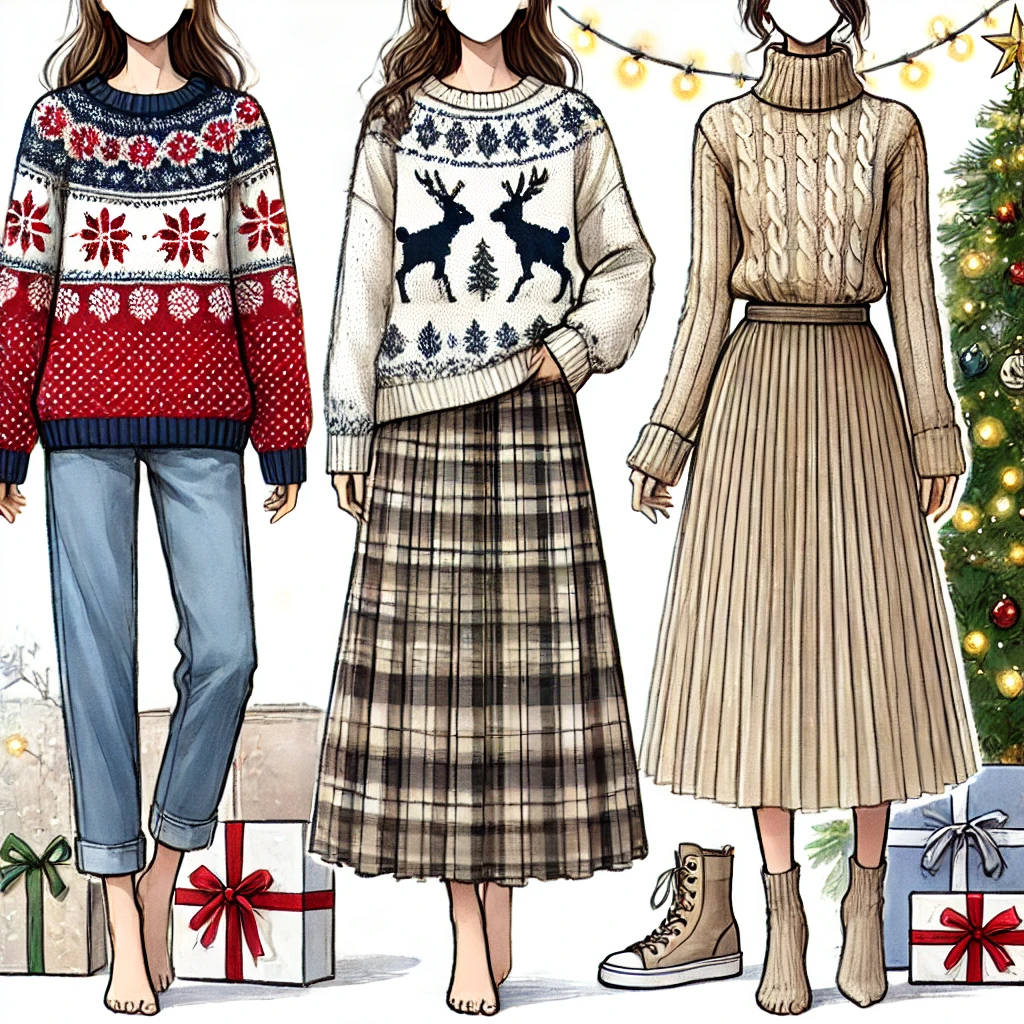 - 데일리룩: 크리스마스 분위기를 유지하면서도 실용적이고 편안한 스웨터, 데님 팬츠, 플리츠 스커트 등이 적합합니다.