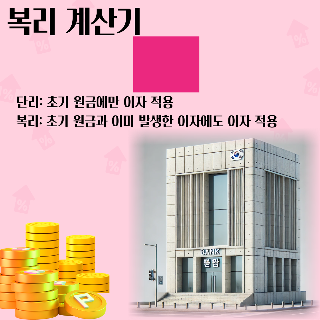 - 복리는 원금과 이미 발생한 이자를 기준으로 이자를 계산합니다.