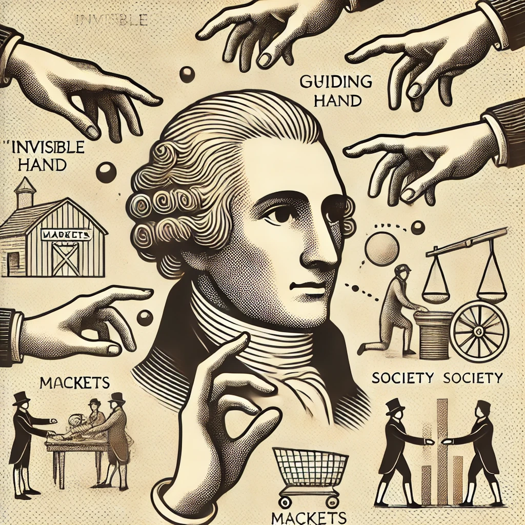 스미스는 "부자는 더 가치 있고 기분 좋은 것을 선택합니다. 그들은 가난한 사람보다 조금 더 소비하며, 그들의 자연스러운 이기심과 탐욕에도 불구하고, 그들은 자신의 편의만을 염두에 두고 있지만, 그들의 모든 개선의 결과를 가난한 사람과 나눕니다. 그들은 보이지 않는 손에 이끌려, 모든 주민들에게 동일하게 분배될 수 있는 생활 필수품을 거의 동일하게 분배합니다."라고 설명합니다. 이는 개인의 이기적인 행동이 사회 전체의 이익을 증진시키는 방식을 설명합니다.
