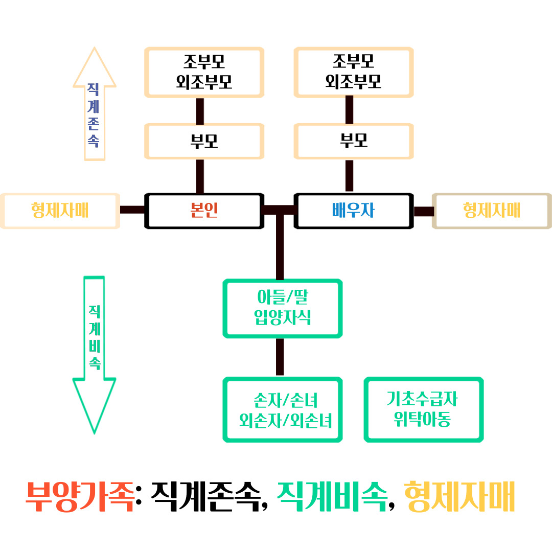 - 설명: 입양된 경우 양가 또는 생가의 직계존속과 형제자매 모두 기본공제 대상이 될 수 있습니다.