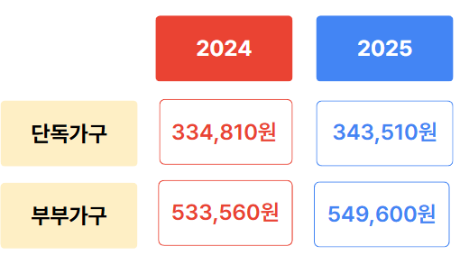 - 부부가구: 533,560원 → 549,600원 (+16,040원)