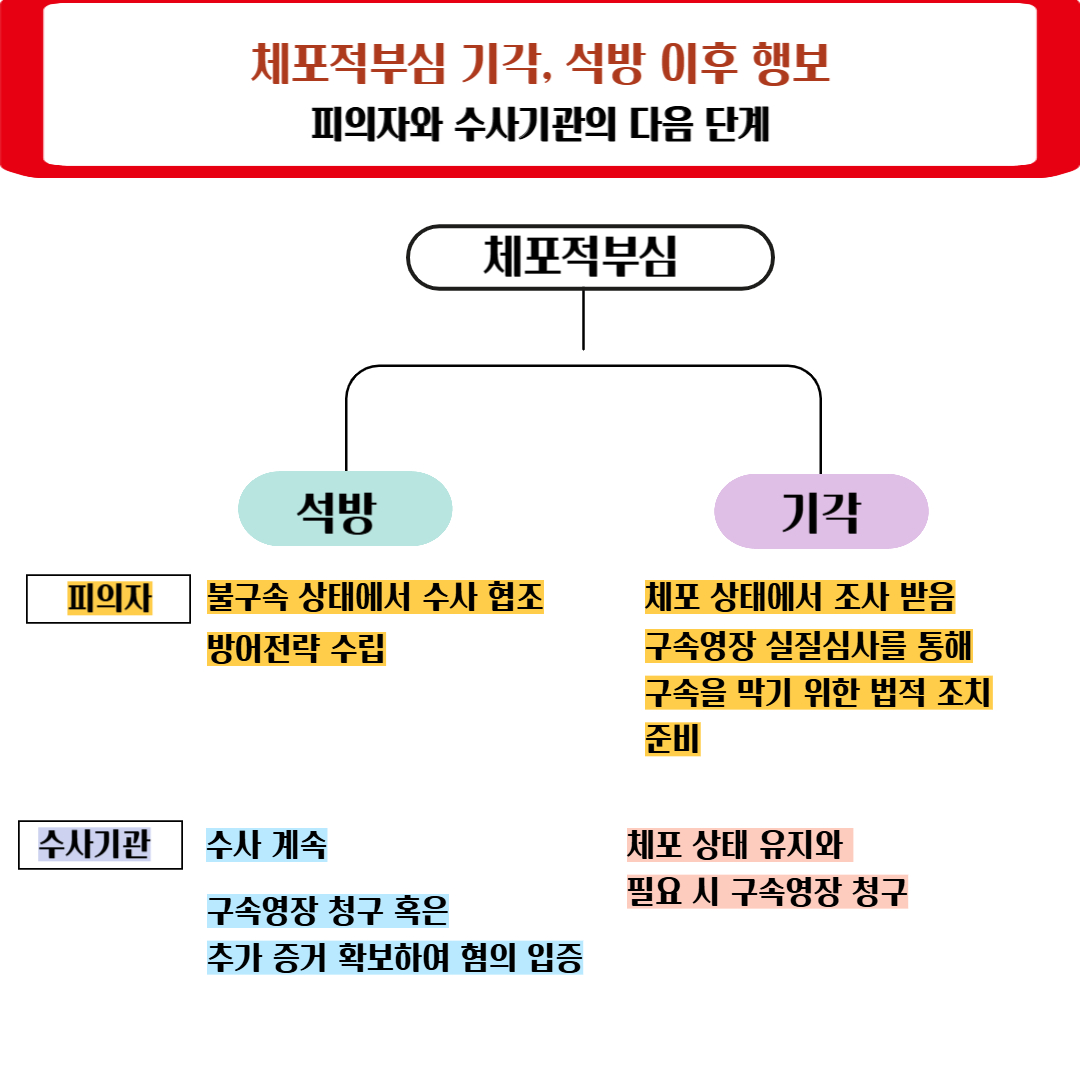 체포적부심의 결과와는 별개로, 수사 진행 상황에 따라 피의자와 수사기관의 행보는 달라질 수 있습니다.