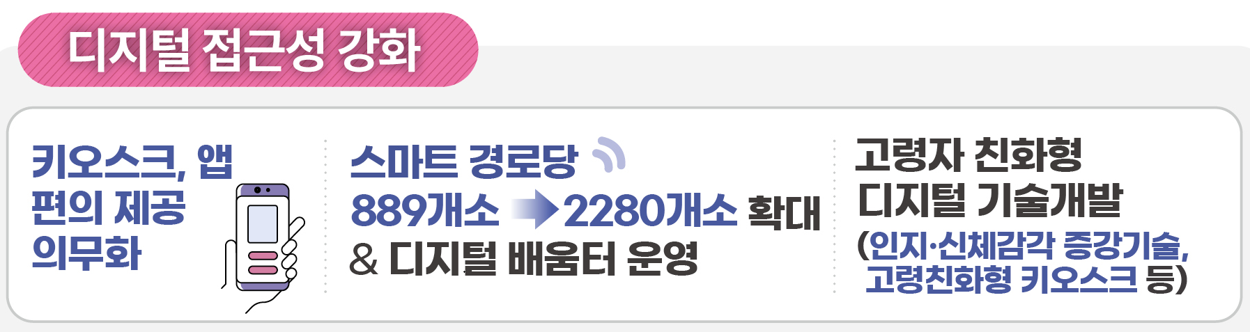 ■ 노인 전용 평생교육 바우처 신설: 정부는 만 65세 이상 기초생활수급자 및 차상위계층 노인을 대상으로 연간 35만 원의 평생교육 바우처를 신설했습니다.
