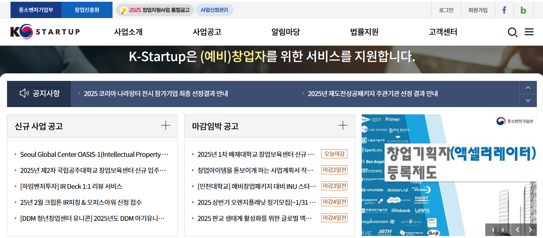 - 특징: 예비 창업자와 스타트업을 위한 창업 지원 포털.