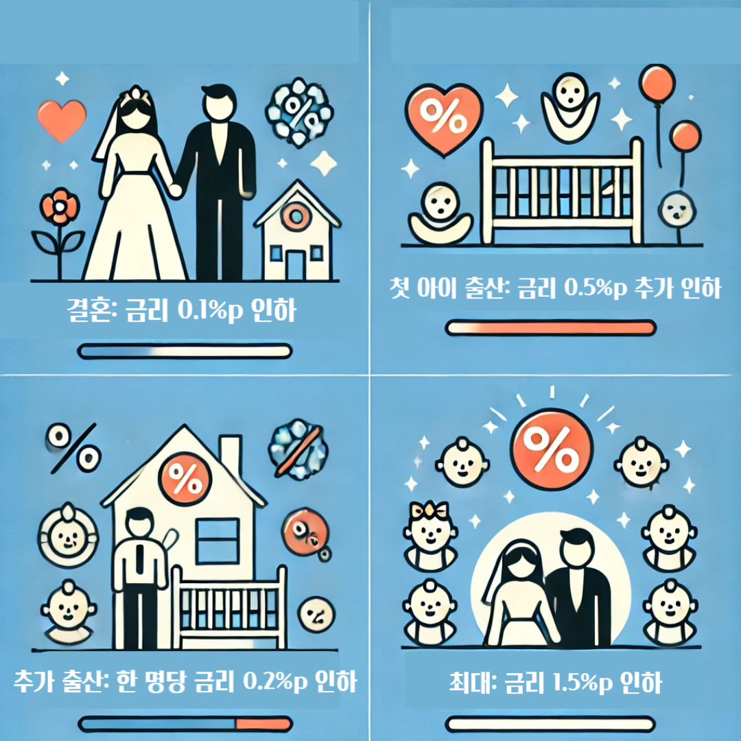 - 첫 아이 출산: 금리 0.5%p 추가 인하.