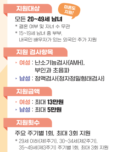 ✔ 미래를 위해 건강한 가임력을 유지할 수 있도록 다양한 지원이 준비되어 있어요.