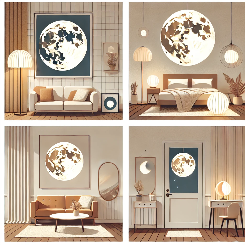 - 거실 벽에 보름달 그림이나 달 모양 액자를 걸어두면 가족의 화목과 긍정적인 에너지를 끌어올릴 수 있습니다.