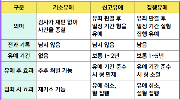 - 전과 기록 없음: 다만, 유예 기간 동안 법을 어기면 유죄 판결이 확정될 수 있음