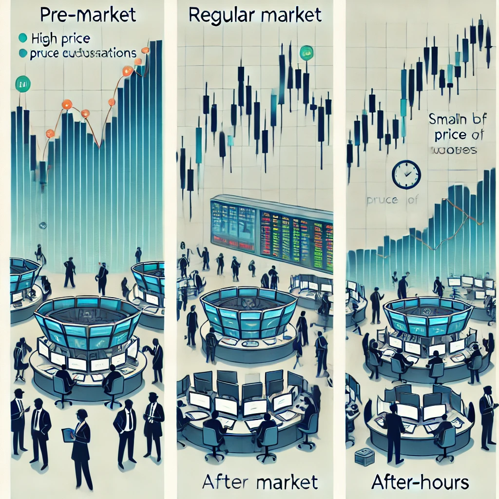 프리장은 거래량이 적고 유동성이 낮아 가격 변동성이 크며, 뉴스 발표에 따라 급등락할 가능성이 높습니다. 정규장은 거래량과 유동성이 가장 높아 초보자부터 전문 투자자까지 모두 접근하기 용이합니다. 애프터장은 거래량이 적고 유동성이 낮지만, 기업 실적 발표에 따라 주가 변동이 크게 나타날 수 있습니다.