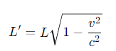 특수 상대성 이론에서 길이 수축은 고속으로 움직이는 물체의 길이가 정지해 있는 관측자에게 실제 길이보다 짧게 보이는 현상입니다. 길이 수축은 물체가 빛의 속도에 가까운 속도로 움직일 때 관찰되며 물체의 운동 방향과 관련이 있어 운동 방향으로만 길이가 수축합니다. 길이 수축은 다음과 같은 수식으로 계산할 수 있습니다.