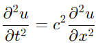 첫 번째는 맥스웰의 파동 방정식으로 왼쪽은 전기장에 대한 식(라플라시안)이고, 오른쪽은 전기장의 시간에 따른 편미분에 상수 와 일반적인 파동 방정식으로 는 파동의 변위, 와 는 각각 공간과 시간, 는 파동의 전파 속도입니다. 이 식에서 왼쪽은 파동의 가속도, 오른쪽은 파동의 곡률, 파동의 속도 는 이 두 효과 간의 관계입니다. 이 두 식을 비교한 결과입니다.