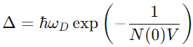 - exp(-1/(N(0)V))는 전자 간의 상호작용 강도(V)와 페르미 에너지에서의 전자 상태 밀도(N(0))에 따라 에너지 갭의 크기가 결정됩니다.