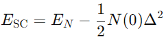 초전도체의 총 에너지는 다음과 같은 식으로 정의되는데 Esc는 초전도 상태의 에너지, EN은 정상 상태의 에너지입니다. 이 식에서 초전도 상태가 일반 상태보다 에너지가 적어 안정적입니다.