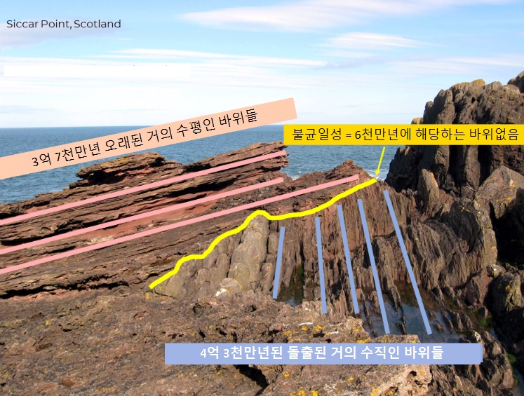 다시 정리하면 Siccar Point에서 발견된 내용은 다음과 같습니다.