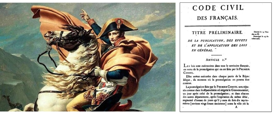 1804년 제정 나폴레옹 법전, 또는 "Code Napoléon" 개인의 권리, 재산, 가족법 등을 포함하며 프랑스 법의 근간 |