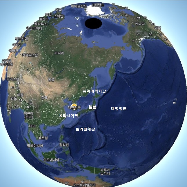 일본의 혼슈는 유라시아판, 필리핀판, 북아메리카판과 같은 세 개의 지각판 교차 지점에 위치해 있습니다. 최근에 일본에 접한 북아메리카판은 오호츠크해, 캄차카반도, 동일본(홋카이도와 도호쿠지방)을 포함하는 독립된 판인 오호츠크판으로 밝혀졌습니다. 위의 그림에서 경계면의 화살표 방향으로 알 수 있듯이 일본이 접한 판 구조는 태평양판의 해양 지각이 유라시아판과 필리핀판을 향해 이동하며 일본의 지각 아래로 미끄러져 내려갑니다. 판들이 교차하는 경계에서는 압축 응력이 지속적으로 누적되다가 이 응력의 해소로 지진이 발생하는 원인의 하나가 됩니다. 도호쿠 지진은 위 그림의 하단에 단면도에서 알 수 있듯이 태평양판이 오호츠크판 아래로 미끄러져 가면서 발생하였습니다. 태평양판은 매년 약 8-9cm의 속도로 오호츠크판을 향해 이동하며, 두 판이 서로 지나가면서 지각 내의 응력이 쌓여 결국 지진으로 해소됩니다. 이러한 규모의 지진으로 일본 북동쪽 해안은 동쪽으로 최대 4미터 이동했습니다. 동시에 해안선은 약 0.5미터 가라앉았습니다. 도후쿠 지진을 요약하여 보았습니다.